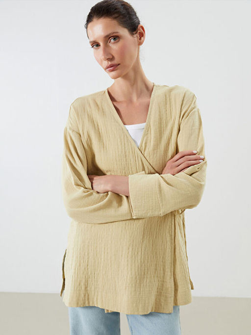 • Kruvaze Yaka Dokulu Y?rtma?l? Kad?n Kimono