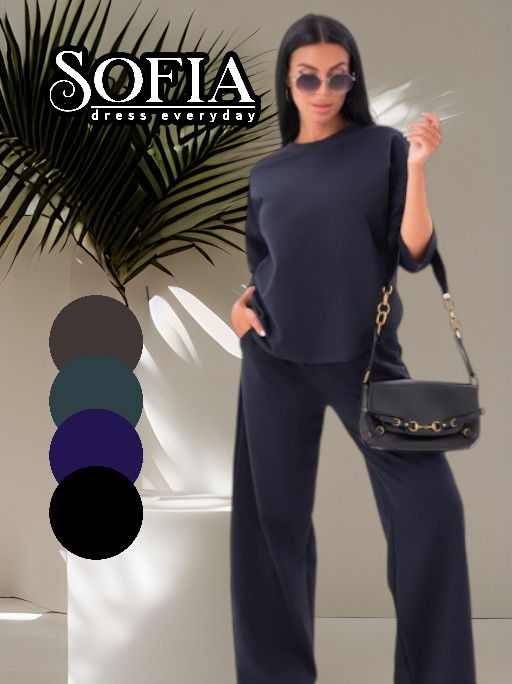 Краткое описание Женский костюм из футера 2х-нитка повседневный: штаны палаццо на резинке и лонгслив с рукавом 3/4. Мягкий хлопковый материал с добавлением полиэстера, производство Турция, не дает усадку после стирки и не линяет, поэтому вещи можно стирать в стиральной машинке в режиме бережной стирки при 30 градусах. Трикотажный костюм свободного расклешенного кроя комфортный и удобный для прогулок. При не строгом дресс коде - офисный или вечерний костюм. Модный и стильный комплект отлично вписался в стилистку кэжел и полюбился покупательницам всех возрастов: девочкам подросткам, девушкам и женщинам, в том числе и возрасте, хорошо скрывает несовершенства, подчеркивает достоинства фигуры. Широкий размерный ряд для полных женщин с пышными формами и стройных, а так же для будущих беременных и кормящих мам. Универсальный костюм можно надеть в путешествие, в отпуск, на дачу как дачный костюм. Отличный подарочный вариант, домашний костюм со штанами можно подарить женщине на любой праздник: 8 марта, день матери, день рождения. Преподнести комплект можно маме, дочке, бабушке, подруге и сестре или порадовать себя любимую даже без повода. -- Характеристики -- Состав: Футер 2х нитка/хлопок 70%, полиэстер 25%, лайкра 5% Цвет: Темно-синий