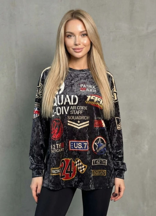 • K13414 Лонгслив OVER SIZE (велюр) ЧЕРНЫЙ