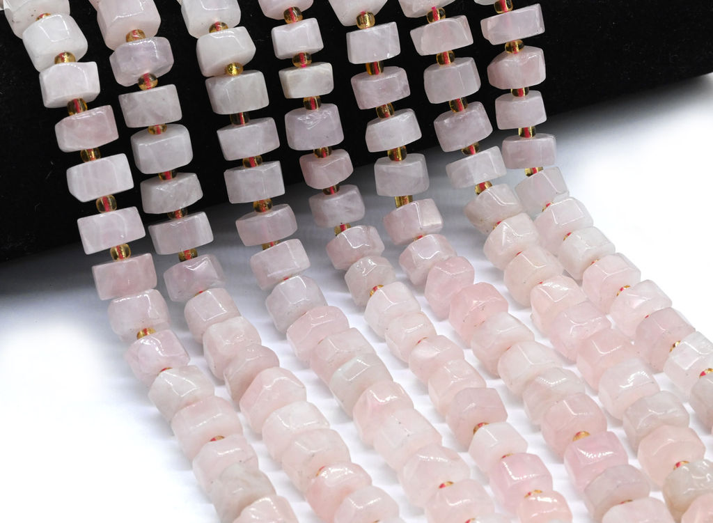 Бусины из розового кварца диски граненые 11*6мм, 36см, 39 бусин Радуга камня