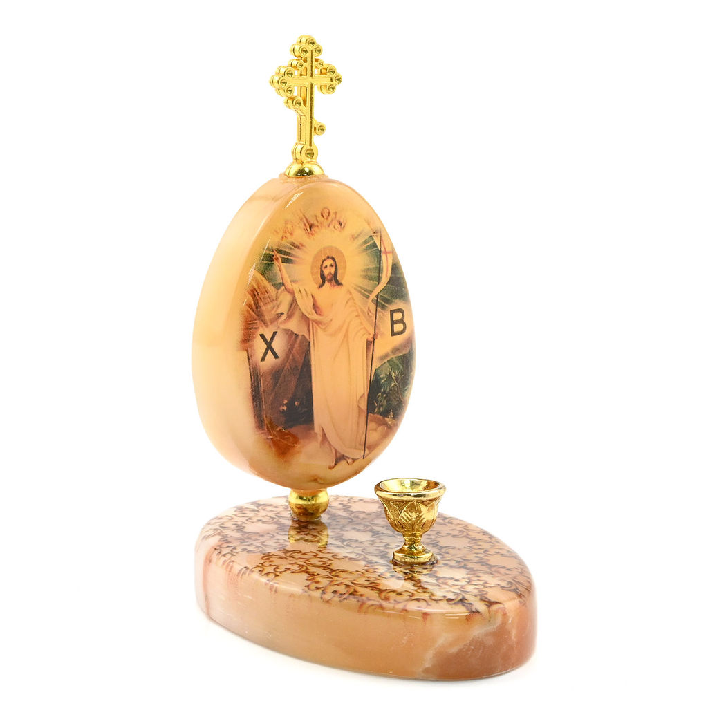 Икона из селенита с подсвечником "Христос воскрес" №2 55*80*107мм Радуга камня