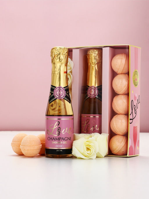 Чистое Счастье Женский набор Розовое шампанское, мыльные цветы и бурлящие шары