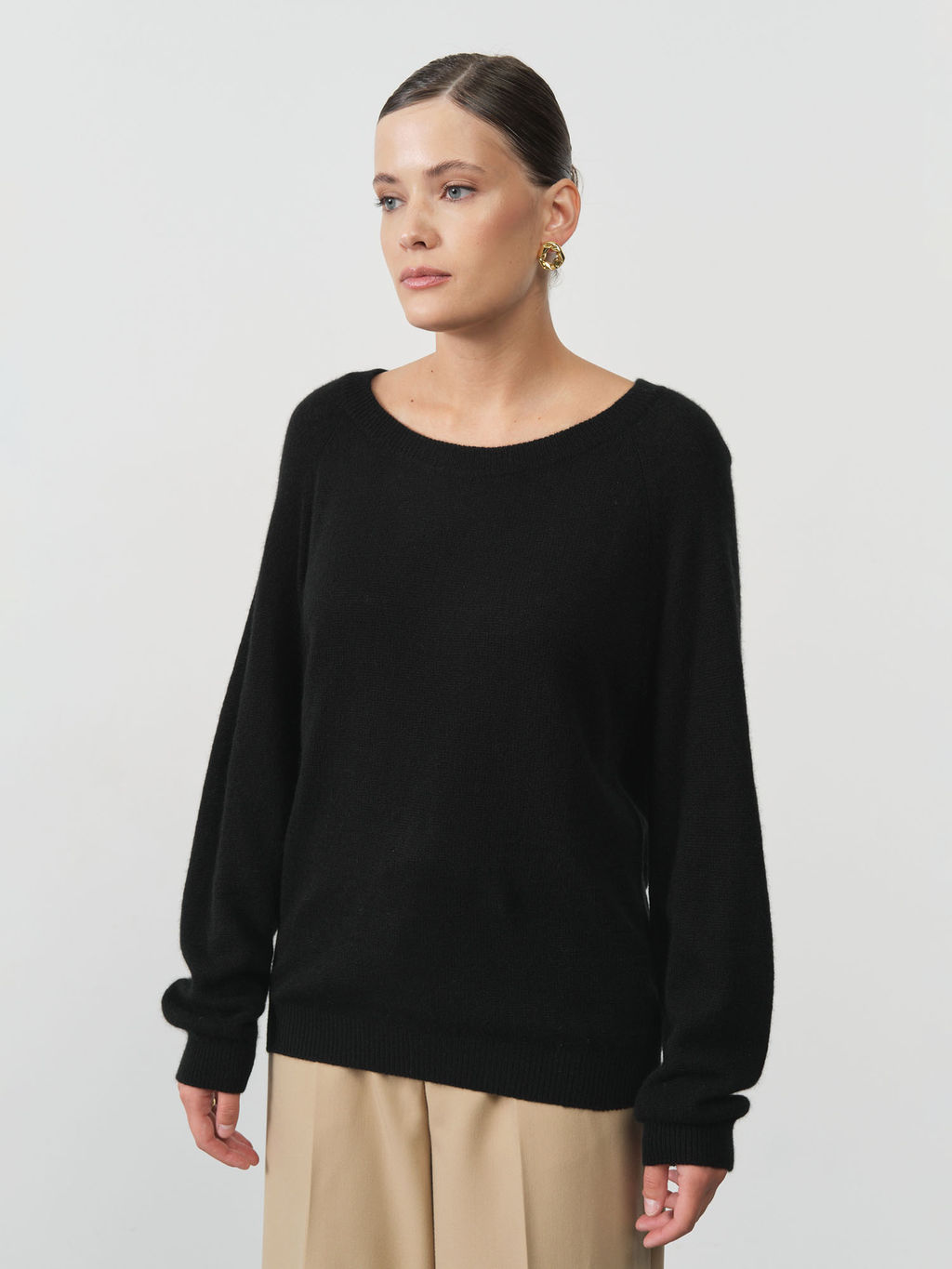 Лаконичный дизайн и вневременной черный цвет открывают безграничные возможности для стилизации. Модель безупречно вписывается в любой гардероб: от делового до повседневного. Джемпер создает элегантные комбинации с брюками, юбками, джинсами и платьями, позволяя формировать образы различной степени формальности.
