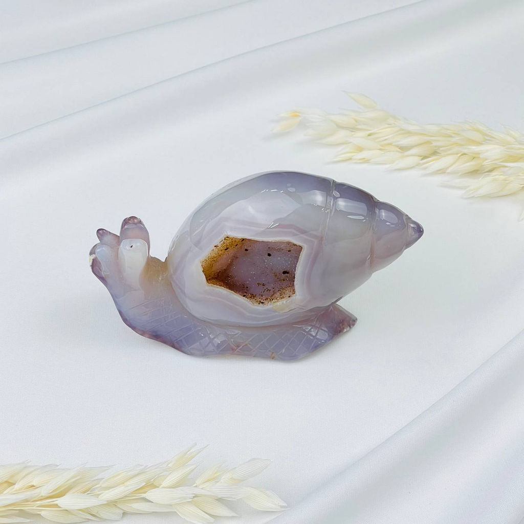 Улитка резная из Агата серого с жеодой