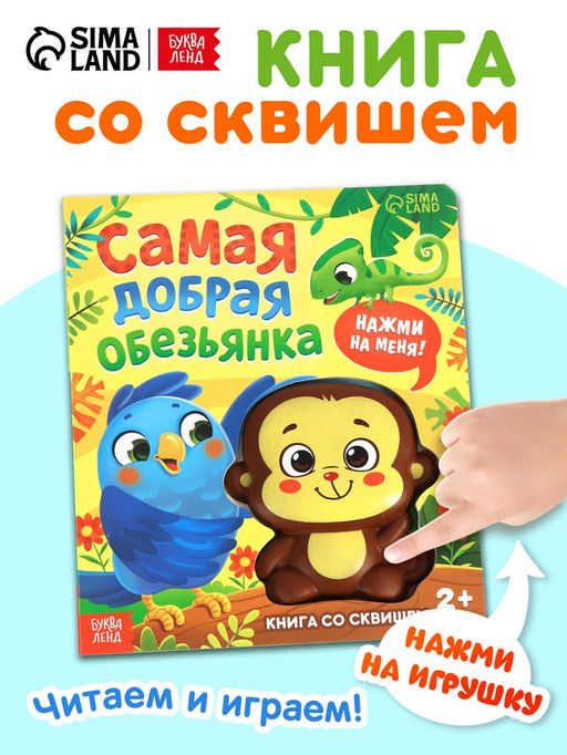 • Книга со сквишем "Самая добрая обезьянка. Нажми на меня!"