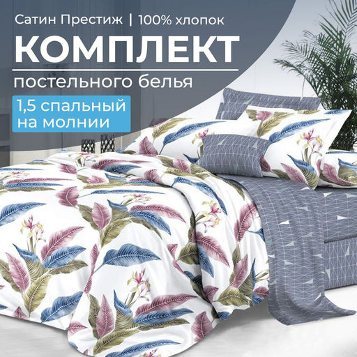 Подарите себе ощущение комфортного сна с нашим 1,5-спальным комплектом постельного белья из сатина "Престиж" плотностью ткани 115 г/м2. В комплекте: пододеяльник размером 150*215 см, который оснащен удобной потайной застежкой на молнии, простыня 150*220 см, две наволочки 70*70 см на молнии. Сатин представляет собой гладкое и блестящее полотно, похожее на шёлк, однако в составе ткани из сатина 100 % хлопок. Постельное белье из этой ткани надежное, плотное, износостойкое, гипоаллергенное, мало сминаемое, поэтому оно очень удобно в быту. Комплекты постельного белья из сатина «Престиж» - это выбор людей, которые ценят комфорт и выбирают качество. -- Характеристики -- Вес: 1700 кг Размерность комплекта: 1,5 спальный Комплектность: 1 пододеяльник, 1 простыня, 2 наволочки Количество предметов в комплекте: 4 Размерность пододеяльника: 1,5 спальный Размер пододеяльника: 150x215 Кол-во пододеяльников в комплекте: 1 Замок пододеяльника: На молнии Размерность простыни: 1,5-спальная Размер простыни: 150x220 Размер наволочки: 70x70 Замок наволочки: На молнии Кол-во наволочек в комплекте: 2 Ткань: Сатин "Престиж" Состав: 100 % хлопок Плотность: 115 г/м2 Плотность плетения: Высокая Режим стирки: При 40 градусах Цвет: Белый Расцветка: Инна Вид принта: Растения Целевая аудитория: Взрослая