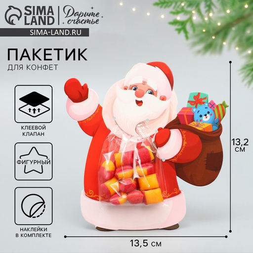 • Цена за 10 шт. Пакет под сладости новогодний «Дед Мороз», 11×6 см