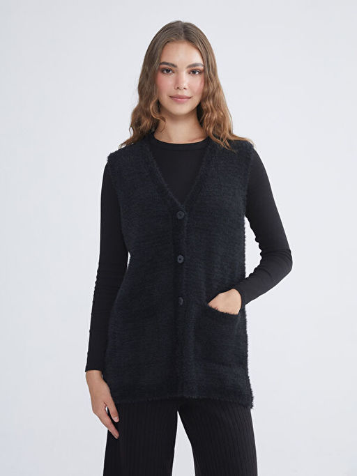 B?y?k Beden V Yaka Kad?n Pel?? Yelek
