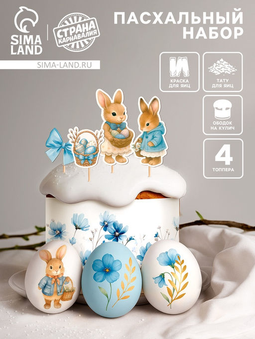 • Цена за 2 шт. Пасхальный декор для кулича и яиц Зайчики, краска, тату, ободок, топперы, перчатки