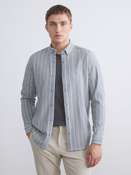 Slim Fit Uzun Kollu ?izgili Erkek G?mlek