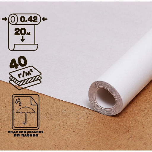 Калька чертёжная под карандаш, ширина 420 мм, в рулоне 20 метров, 35-40 г/м², в ПП плёнке
