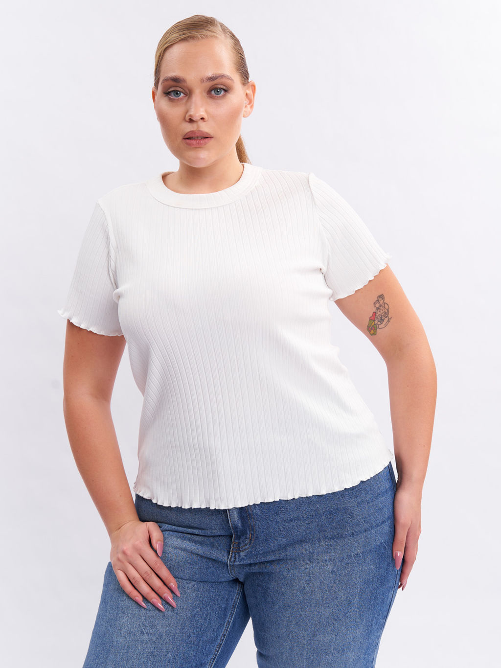 Описание товара Женская футбола больших размеров в рубчик из трикотажа "Лапша"