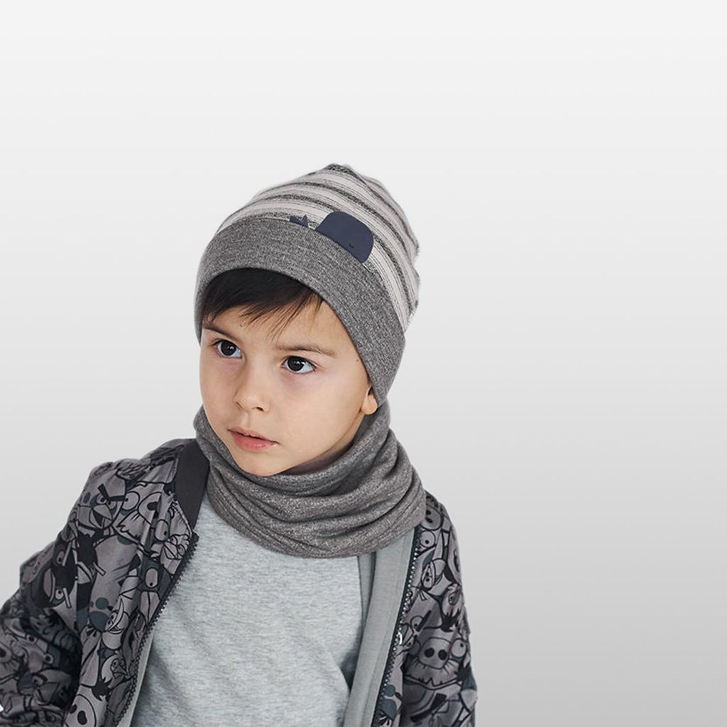 Уютный комплект (шапочка с завязками и шарф-снуд) для мальчика.