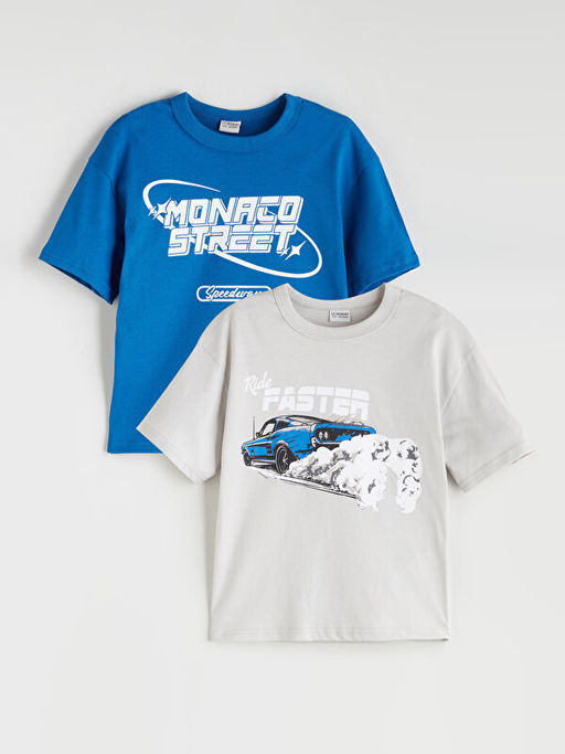 • Bisiklet Yaka Bask?l? Erkek ?ocuk Ti??rt 2li