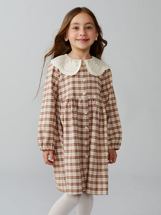 Bebe Yaka Ekose Desen Flanel K?z ?ocuk Elbise