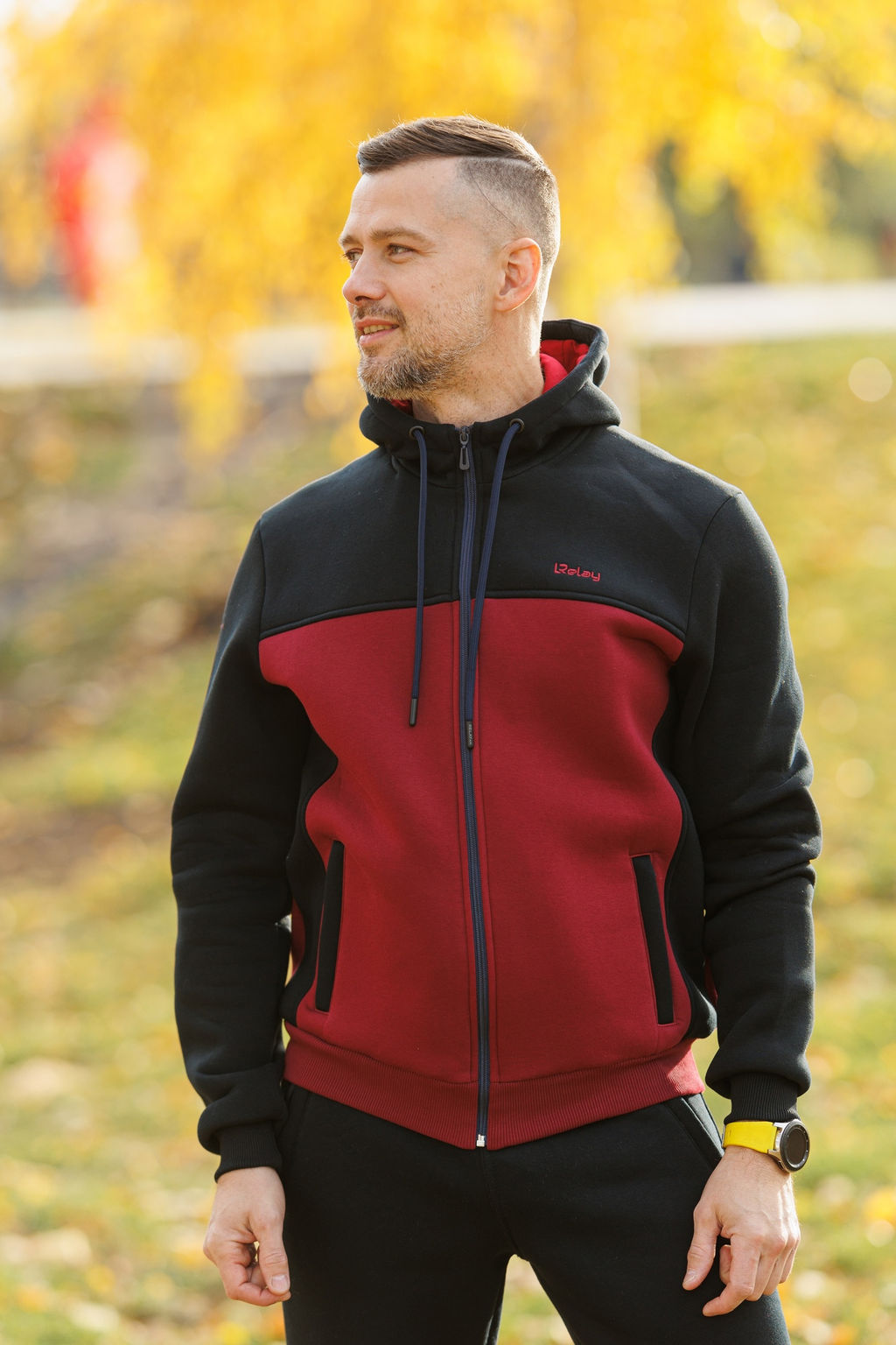 Верх — толстовка на молнии с высоким капюшоном. Отрезная кокетка и контрастная вставка по передней части создают динамичный и современный образ. Удобные боковые карманы на молнии с листочками надёжно защищают содержимое. Рукава и низ изделия на манжете, что обеспечивает плотную посадку и комфорт при движении.