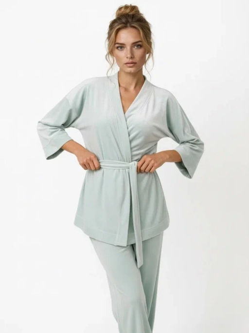 • Пижама Кимоно+брюки из велюра OD-836-2 серо-зеленый