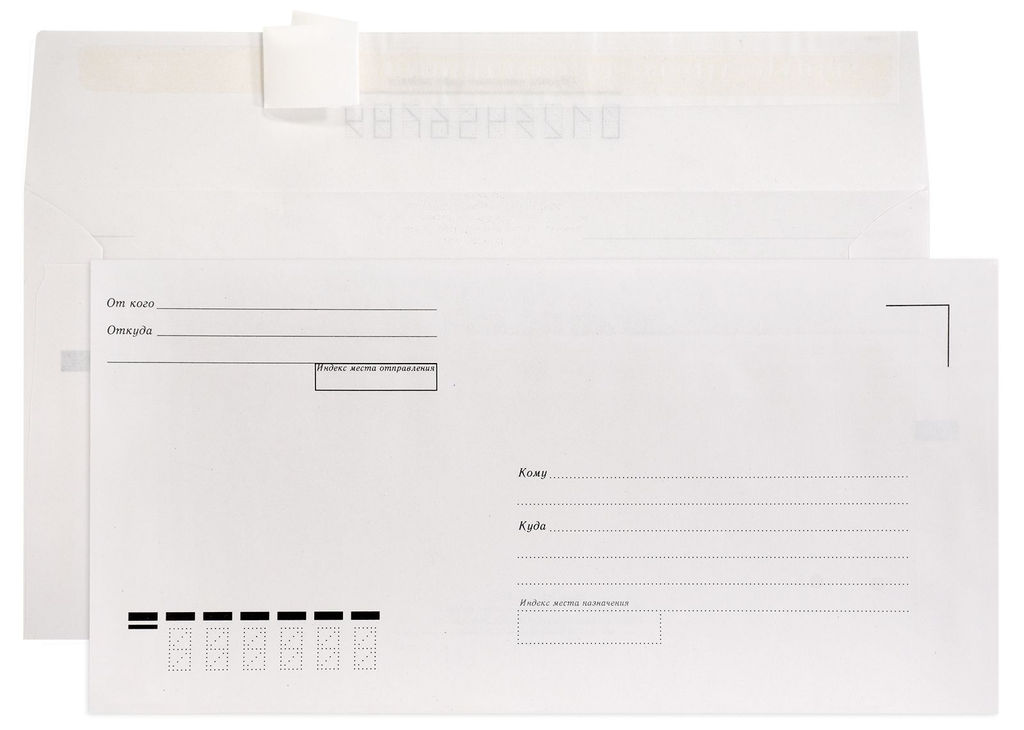 Цена за 50 шт. Конверт почтовый Е65 (110х220) КУДА-КОМУ, белый, стрип, 80 г/м2