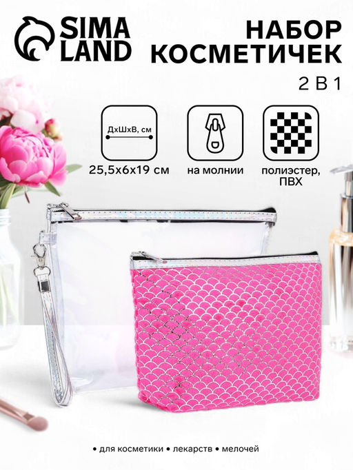 Для кого: Для женщины. Длина, см: 25.5. Ширина, см: 6. Высота, см: 19. Количество отделений: 1. В наборе, шт.: 2. Вид застёжки: Молния. Тематика: Морская тематика. Рисунок: Нет. Размер: Большой. Размер: Средний. Особенности косметичек: Цветные. Бесплатная доставка: Да. Размеры товара: 6/19/25.5. Примечание: Оттенок данного товара может незначительно отличаться от фото/видеоизображения (в зависимости от настроек яркости вашего экрана)..