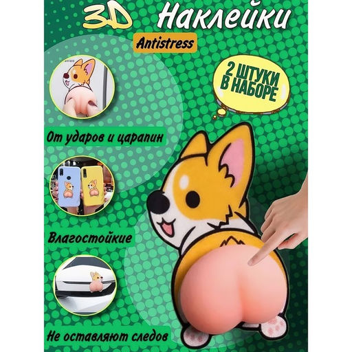 • Цена за 20 шт. Антистресс - наклейка «Попка. Пёсик», в наборе 2 мялки