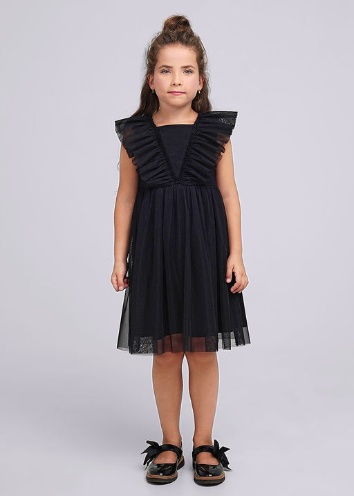 Воздушное платье для девочки создано для волшебных образов! Низ - двухслойная юбка, верхний слой из мягкой сетки. Пышные рукава -крылышки - из такой же сетки. Стильный вариант для любого праздника! 100% хлопок
