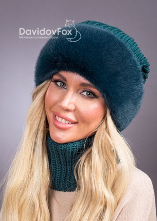 • Шапка Ника трикотаж экомех изумруд