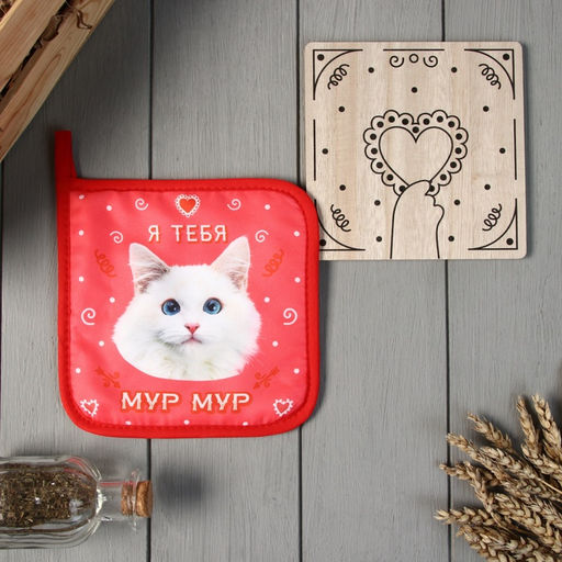Этот яркий кухонный набор тёплый и практичный знак внимания для самых близких. Две вещицы в милом дизайне с котиками и романтичными надписями создают на кухне атмосферу уюта и заботы. Они станут верными помощниками в ежедневных хлопотах и напоминанием о ваших чувствах.