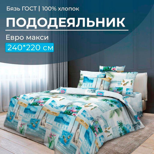 Пододеяльник большого размера Евромакси 240*220 см из бязи ГОСТ, плотностью ткани 140 г/м2. Вход для одеяла расположен внизу пододеяльника. Вам обязательно понравится эта плотная, добротная ткань, которая имеет длительный срок службы. Рисунки на ней смотрятся четко и выразительно. Ну и, конечно, у этой ткани абсолютно натуральный состав - хлопок 100 %. Она очень комфортна, экологична, не деформируется, хорошо впитывает влагу, позволяет коже дышать, что способствует вашему полноценному отдыху! Мы являемся производителями, сами следим за выпускаемой продукцией и гарантируем высокое качество! Наши изделия произведены в Ивановской области, имеют сертификацию качества "ГОСТ 31307-2005", а также зарегистрированы в государственной системе маркировки "Честный знак". -- Характеристики -- Вес: 1380 кг Размерность пододеяльника: Евро макси Размер пододеяльника: 240x220 Замок пододеяльника: С прорезью Длина прорези (см): 70 см Ткань: Бязь ГОСТ Состав: 100 % хлопок Плотность: 140 г/м2 Плотность плетения: Высокая Отделка: Без отделки Режим стирки: При 40 градусах Цвет: Бирюзовый Расцветка: Парадайз Вид принта: Морская тематика Целевая аудитория: Взрослая