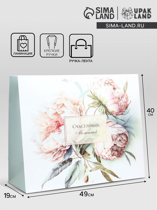• Пакет подарочный ламинированный горизонтальный Счастливых моментов, XL 49?40?19 см