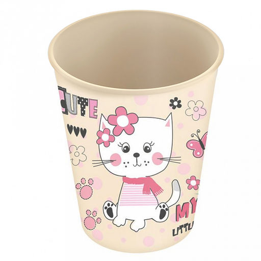 • Стакан пластмассовый 280мл, д7,6см, h9,7см, детский, полипропилен, светло-бежевый, IML-декор "Кошечка" (Россия)