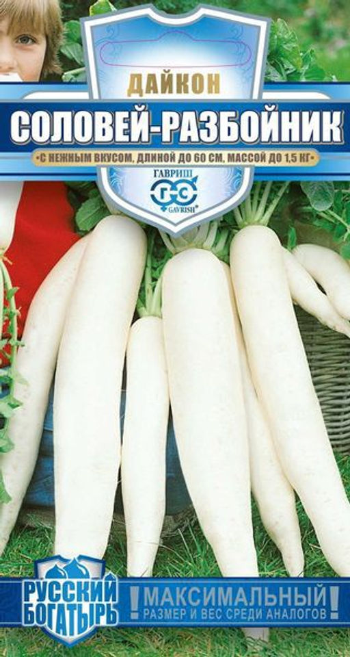 Среднеспелый (от всходов до уборки урожая 45-57 дней) сорт крупного дайкона для летнего посева. Цилиндрические белоснежные корнеплоды длиной до 60 см и диаметром 10-12 см, к сбору урожая достигают массы 1,2-1,5 кг. Мякоть плотная, хрустящая, очень сочная, нежная, не содержит острых горчичных масел. Сорт жаростойкий, устойчив к болезням. Используют в свежем виде и для непродолжительного хранения. Корнеплоды на 2/3 приподняты над поверхностью почвы, что облегчает ручную уборку. Урожайность 11-15 кг/м?. Посев производят в открытый грунт, в июле, на глубину 1,5-2 см. Всходы появляются на 3-5 день. Уборку корнеплодов осуществляют во второй половине сентября или в октябре.
