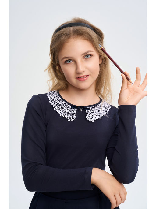 Блузка для девочки из трикотажного полотна с длинным рукавом, прилегающего