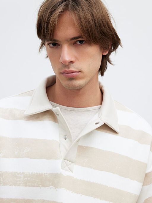 • Polo Yaka ?izgili Erkek Sweatshirt