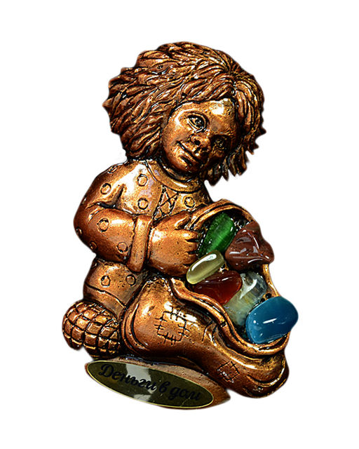 Магнит с самоцветами"Домовенок с мешком" 70*100мм, 80гр Радуга камня
