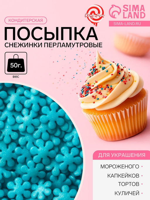 • Цена за 2 шт. Посыпка кондитерская «снежинки перламутровые», голубые, 50 г