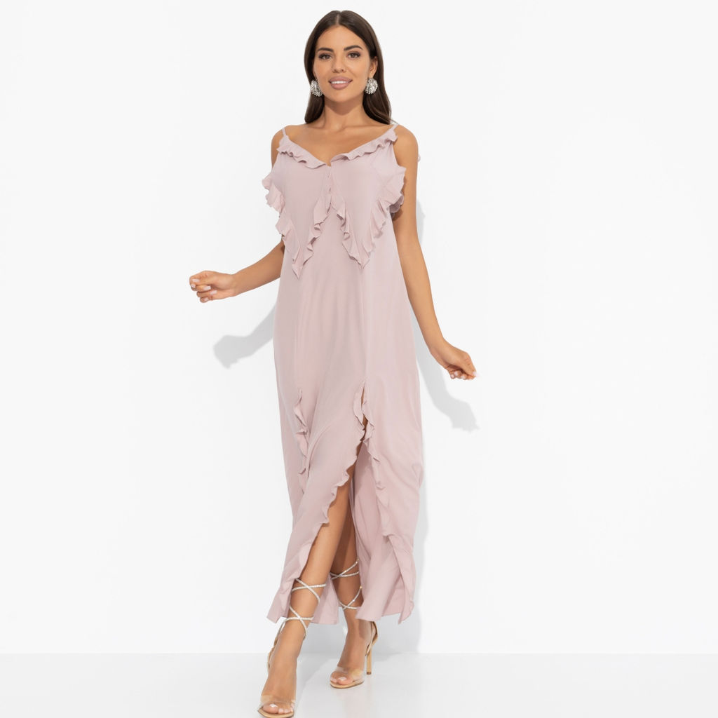 Проснувшись утром я первым делом планирую вечер. Ведь сегодня самое интересное запланировано на время после заката. День, наполненный приятными хлопотами, завершается походом в недавно открывшийся ресторан в платье CHARUTTI. Хорошо быть мной  не жизнь, а сказка. Платье на тонких бретелях в длине макси с разрезами. Изделие урашено рюшами. Спинка открытая. Бретели оформлены тонкими регулируемыми завязками. ­