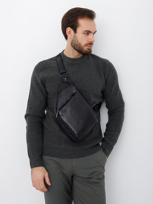 Мужской рюкзак, выполнен из натуральной кожи. Дополнен темной серебристой фурнитурой. Данная модель закрывается на молнию, носится на одном плече. Каркас полужесткий. Встроенный ремень перестегивается.
