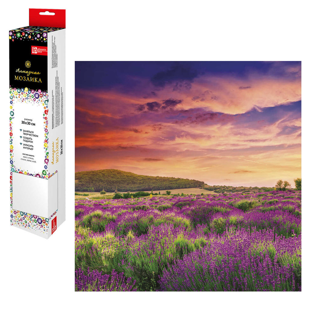 Алмазная мозаика (набор для творчества) арт. 59774 / 20 ЛАВАНДОВЫЙ БРИЗ, размер холста: 30*30 см, размер напечатанной картины: 24,5*24,5 см, (22 цветов страз, холст с напечатанной картиной, покрытый клеевым слоем и защитной пленкой, пакеты со стразами, лоток для страз, стилус, силикон для страз, клей, схема, дополнительные пакеты с zip-молнией в комплекте, форма страз: круглая, тип выкладки: полная, картонная коробка с европодвесом)