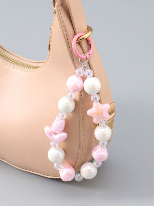 Брелок на карабине "Тюльпаны и звёзды" розово-перламутровый 11х4х1,5 см