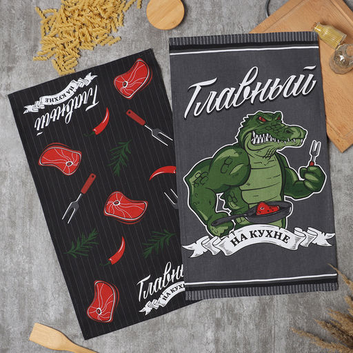 • Набор полотенец кухонных Доляна. Главный на кухне, 35?60 см - 2 шт., рогожка, хлопок 100%, 160 г/м?