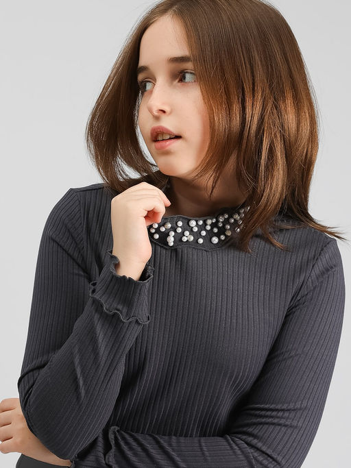 Водолазка для девочки Соль&Перец, декорированная жемчугом. Водолазка прекрасно сочетается как с юбкой и сарафаном, так и с брюками, подчеркнет индивидуальный стиль девочки, и разнообразит ее повседневный школьный образ.