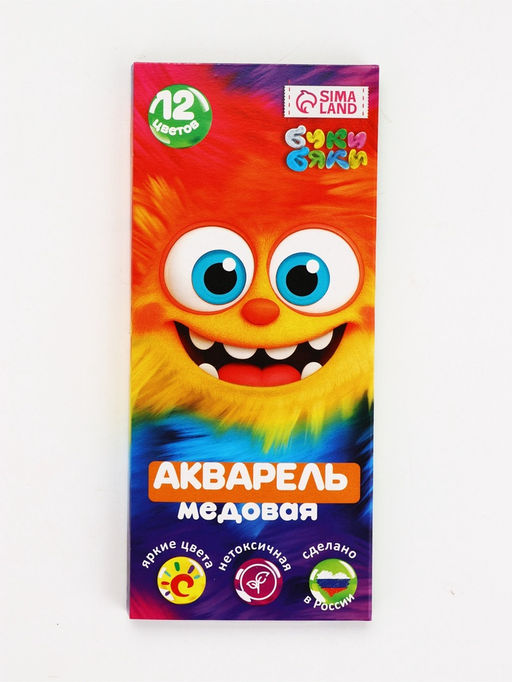 • Цена за 3 шт. Акварель 12 цветов, упаковка картон "Монстрик"