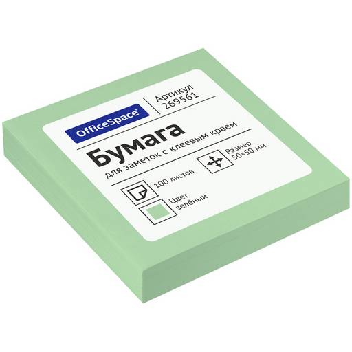 Цена за 5 шт. Блок самоклеящийся OfficeSpace 50*50мм 100л., зеленый (269561)