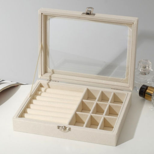 • Шкатулка для украшений, 7 полос, 9 ячеек, 20×15×4.5, бежевая