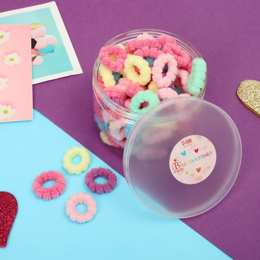 Набор: Да. Для кого: Для девочки. Диаметр, см: 2. В наборе, шт.: 100. Тип: Резинка. Вид резинки: Тканевая. Бесплатная доставка: Да.