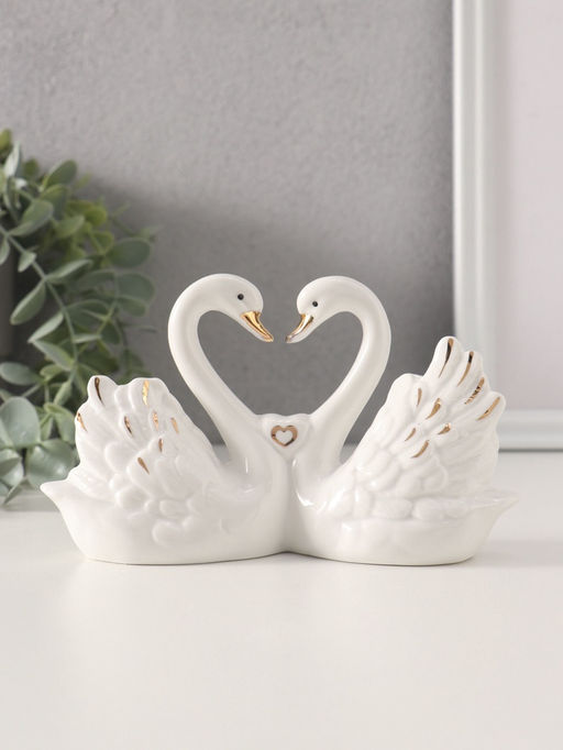 • Фигурка керамика Белые лебеди с маленьким сердечком, с золотом, 4?15?9 см