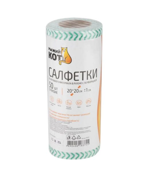 • Цена за 2 шт. Салфетка из спанлейса в рулоне с перфорацией 20*20см 50шт 109131