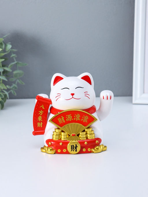 • Маятник настольный антистресс от солнечной батареи «Белый кот Манэки-нэко с веером», 11.2×14.3×15.3 см