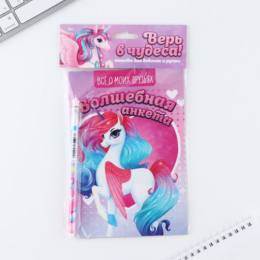 • Подарочный набор, анкета для девочек и ручка Единорог