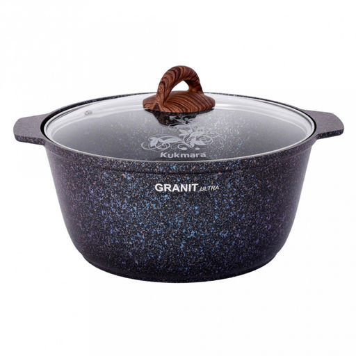 • Кастрюля с антипригарным покрытием 5л, д28см "Granit Ultra", h12см, толщина дна 0,6см, стеклянная жаропрочная крышка, цельнолитая ручка из термостойкого пластика, голубой гранит, "Kukmara" (Россия) - можно использовать металлические кухонные принадле